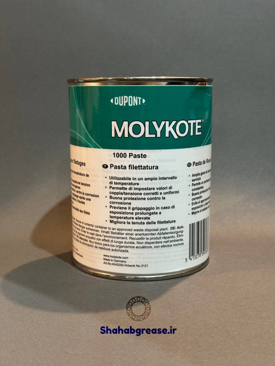 گریس مولیکوت ۱۰۰۰ یک روانکار صنعتی خمیری شکل و بسیار باکیفیت است که توسط مهندسین کارخانه خوشنام مولیکوت آلمان (DuPont MOLYKOTE) به تولید رسیده است. این محصول که به صورت جامد خمیری شکل و در بسته بندی تک جزئی عرضه میشود، به طور تخصصی برای روانکاری اتصالات فلزی و قطعات بسیار حساس صنعتی که در دمای بسیار بالا کار میکنند، طراحی شده است.